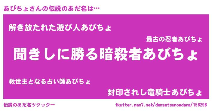 | 男性向けラノベタイトル風あだ名 | 『あびちょという概念が存在しない退屈な世界 』 |