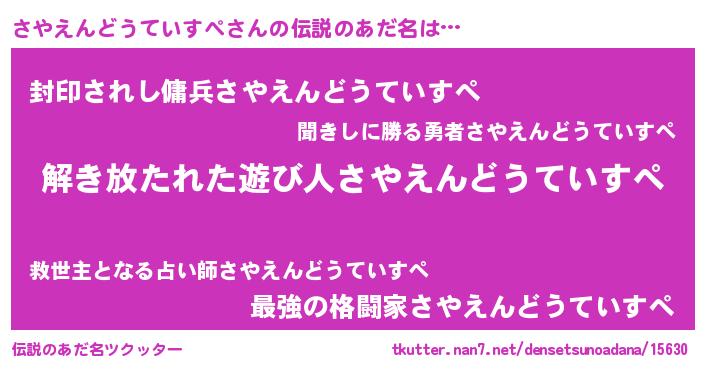 | ヒーロー風カッコイイあだ名 | 『サイバー戦士サヤエンドウテイスペ』 |