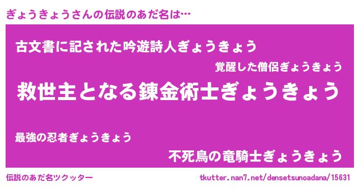 | ヘコむあだ名 | 『ぎょうきょう(震え声)』『ぎょにー』 |