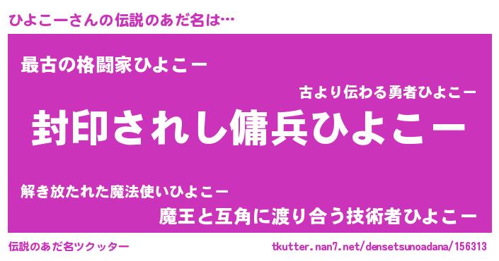 | ヒーロー風カッコイイあだ名 | 『スーパーヒヨコー』『仮面ヒヨダー』 |