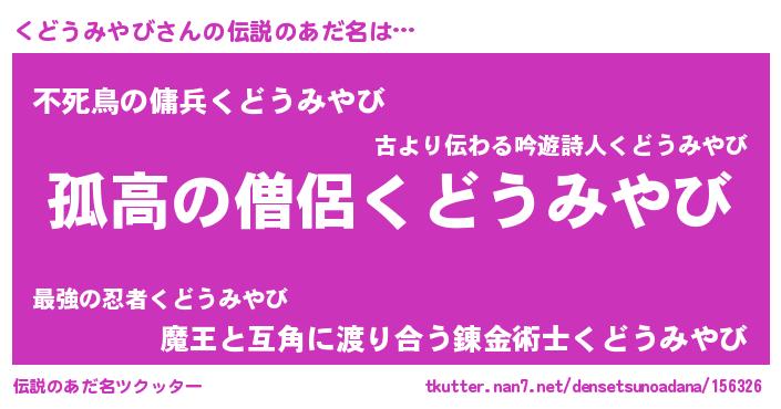 | 意味不明あだ名 | 『とにかく怪しいくどうみやび』 |