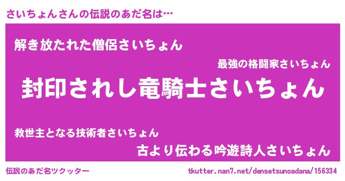 | 意味不明あだ名 | 『住所不定無職さいちょん(10歳)』 |