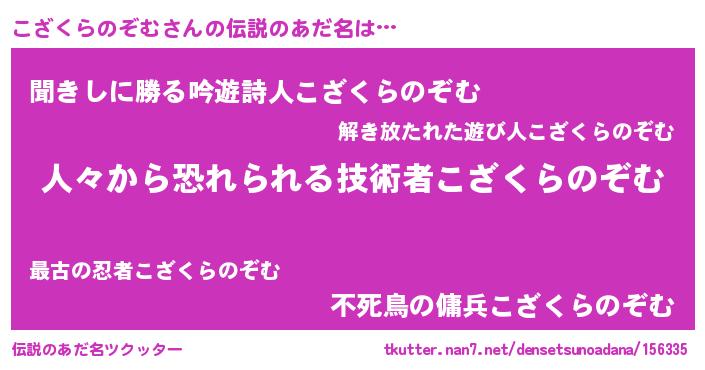 | ヘコむあだ名 | 『こざくらのぞむ(笑)』『こざにー』 |