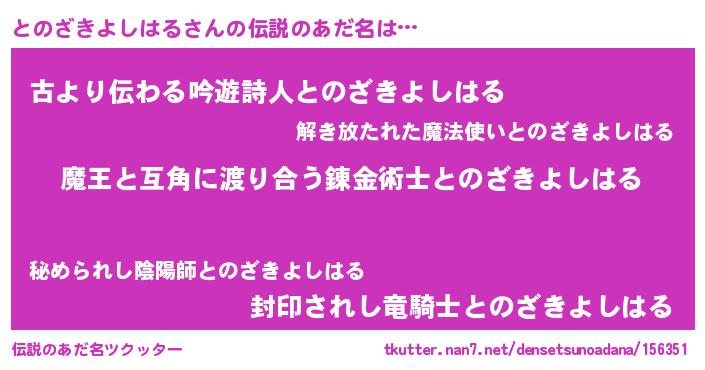 | 女子向けラノベタイトル風あだ名 | 『とのざきよしはる恋絵巻』 |