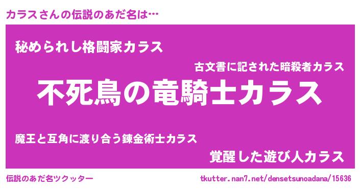 | 男性向けラノベタイトル風あだ名 | 『カラスアートオンライン』 |
