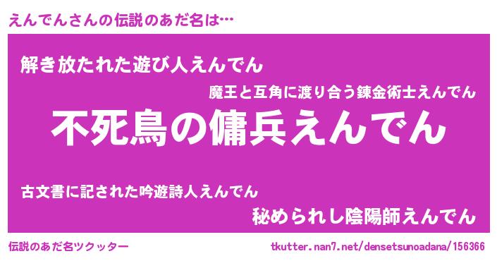 | 意味不明あだ名 | 『住所不定無職えんでん(47歳)』 |