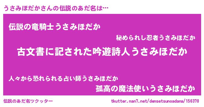 | ヘコむあだ名 | 『うさみほだか(笑)』『うさふぇ~』 |