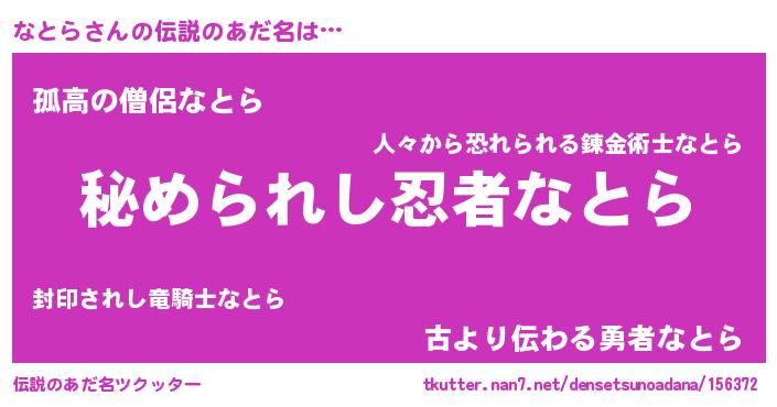 | 意味不明あだ名 | 『住所不定無職なとら(43歳)』『自称なとら』 |