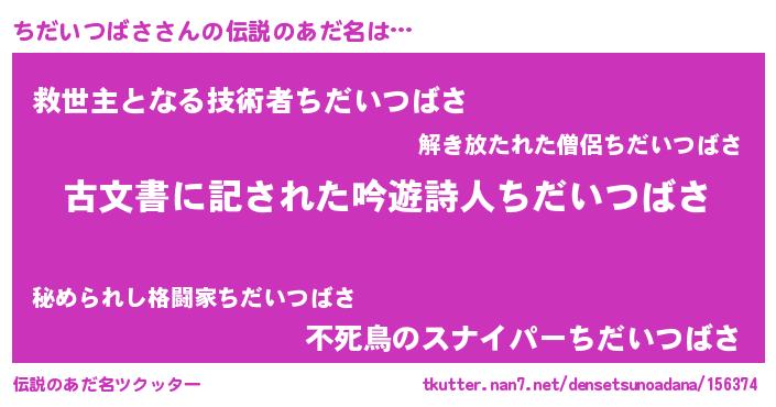 | ヒーロー風カッコイイあだ名 | 『ネオチダイツバサ』『幻影騎士チダ』 |