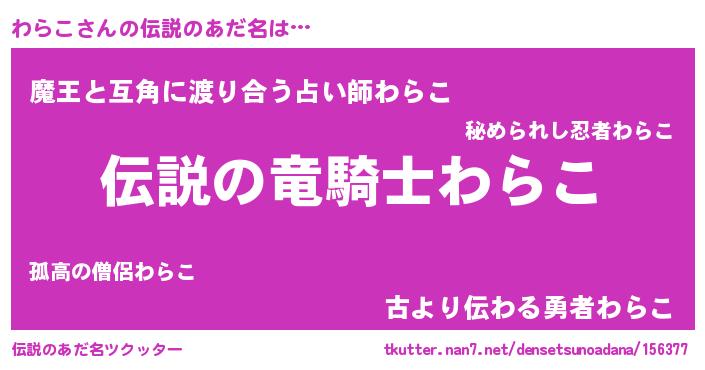 | 男性向けラノベタイトル風あだ名 | 『わらこの憂鬱』『魔法科高校のわらこ』 |