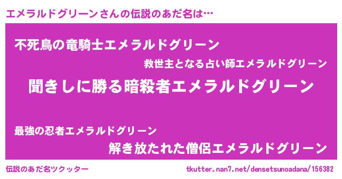 | 胡散臭い通販商品みたいなあだ名 | 『絶対に幸福をもたらす健康食品…その名も「エメラルドグリーン」』 |