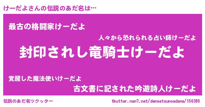 | 意味不明あだ名 | 『ペロリンけーだよ』『自称けーだよ』 |