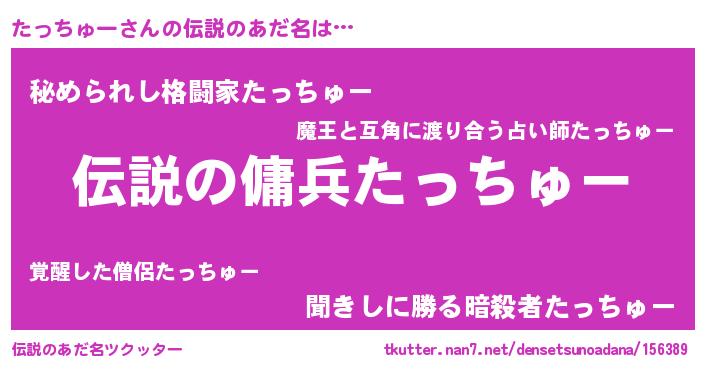 | 男性向けラノベタイトル風あだ名 | 『たっちゅーの憂鬱』 |