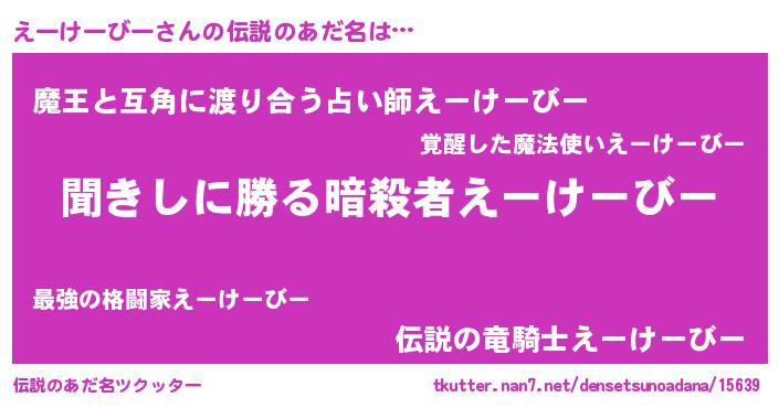 | 意味不明あだ名 | 『住所不定無職えーけーびー(59歳)』 |