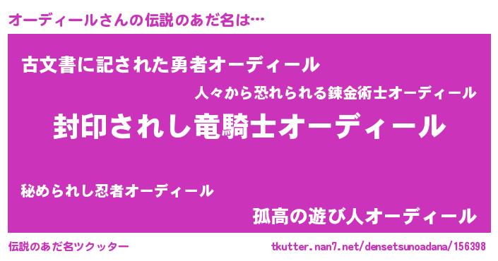 | ヒーロー風カッコイイあだ名 | 『仮面オーダー』『スーパーオーディール』 |