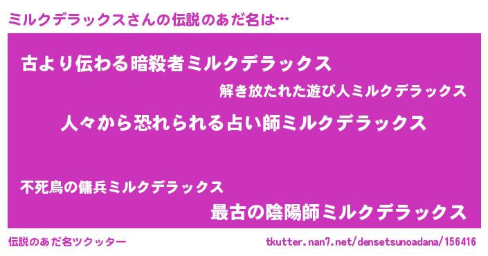 | 女子向けラノベタイトル風あだ名 | 『ミルクデラックスアンティーク』 |