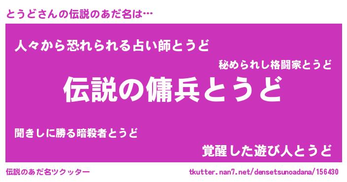 | ヒーロー風カッコイイあだ名 | 『仮面トウダー』『スーパートウド』 |