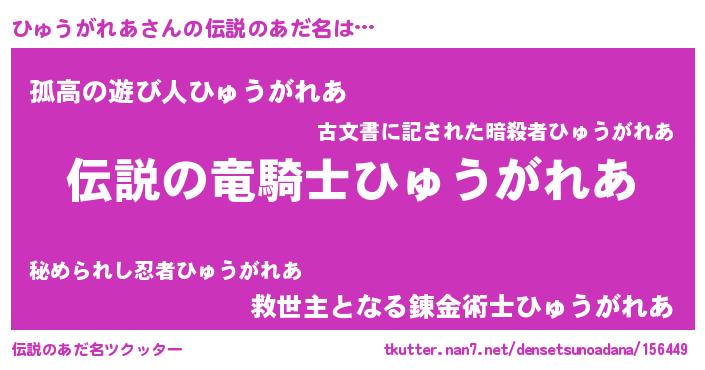 | 男性向けラノベタイトル風あだ名 | 『ひゅうがれあの憂鬱』 |