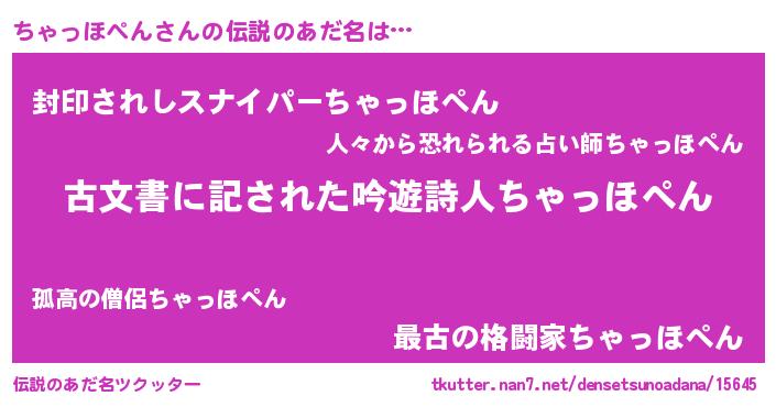 | ヒーロー風カッコイイあだ名 | 『ネオチャッホペン』『仮面チャダー』 |
