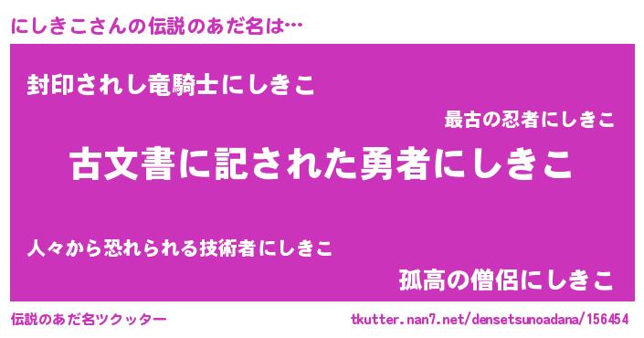 | ヘコむあだ名 | 『にしきこ(震え声)』『にしにー』 |