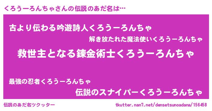 | ヒーロー風カッコイイあだ名 | 『天空の使者くろうーろんちゃ』 |
