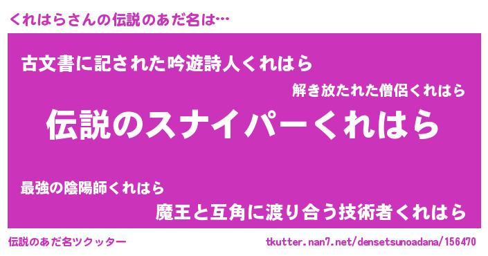 | 胡散臭い通販商品みたいなあだ名 | 『必ず成功する霊験あらたかなお札…その名も「くれはら」』 |