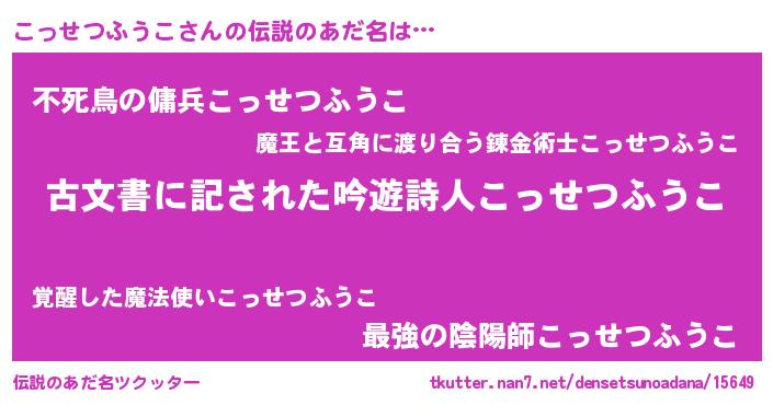 | ヘコむあだ名 | 『こっせつふうこ(笑)』『こっにゅー』 |