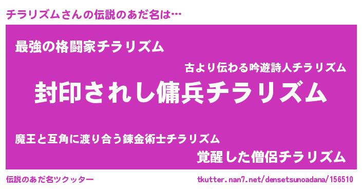 | ヒーロー風カッコイイあだ名 | 『究極戦士チラリズム』『仮面チラダー』 |