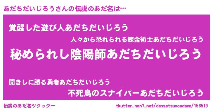 | 女子向けラノベタイトル風あだ名 | 『あだちだいじろうの雑貨屋さん』 |