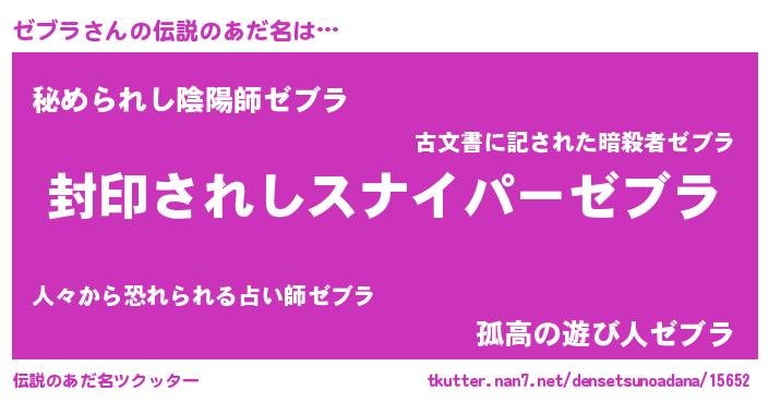 | ファンタジー風あだ名 | 『ゼブフェル』『エターナルゼブラー』 |