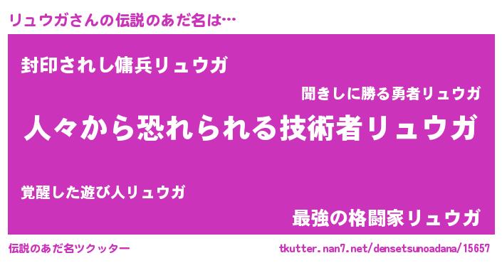 | ヒーロー風カッコイイあだ名 | 『仮面リュダー』『愛の使者リュウガ』 |