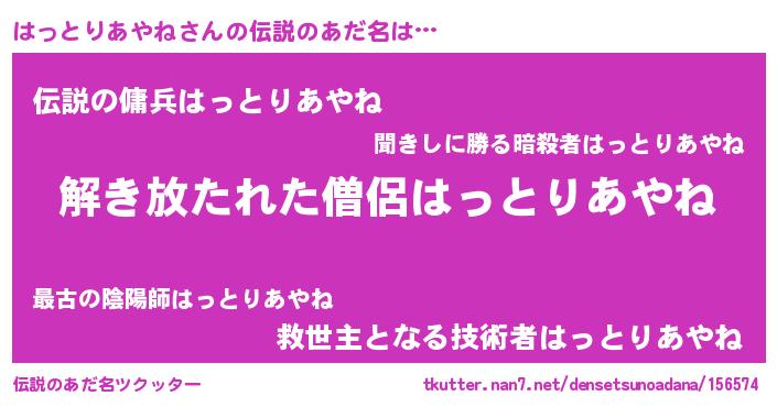 | 意味不明あだ名 | 『とにかく怪しいはっとりあやね』 |