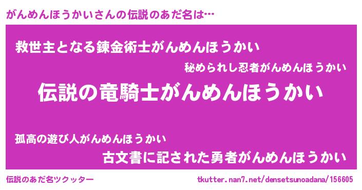 | ヒーロー風カッコイイあだ名 | 『スーパーガンメンホウカイ』 |