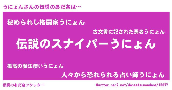| 男性向けラノベタイトル風あだ名 | 『緋弾のウニョン』『ウニョンスレイヤー』 |