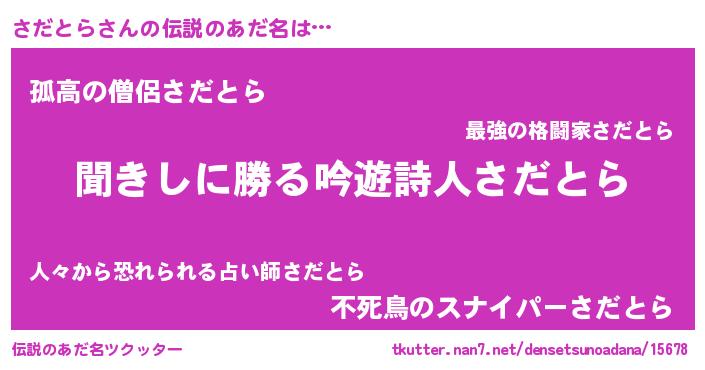 | 男性向けラノベタイトル風あだ名 | 『サダトラスレイヤー』 |