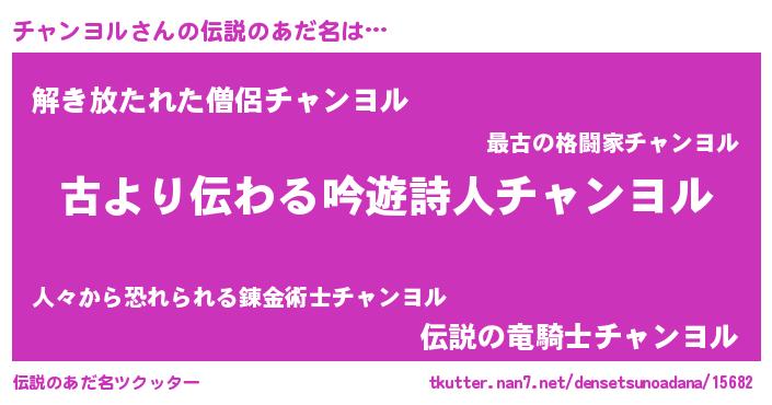 | 女子向けラノベタイトル風あだ名 | 『闇のチャンヨル』 |