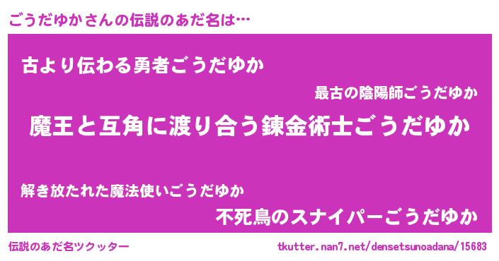 | ヒーロー風カッコイイあだ名 | 『愛の使者ごうだゆか』『ネオゴウダユカ』 |
