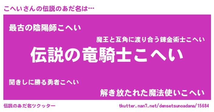 | 男性向けラノベタイトル風あだ名 | 『こへいの憂鬱』 |