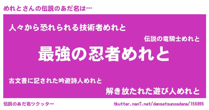 | 意味不明あだ名 | 『めれとフォーエバー』『自称めれと』 |