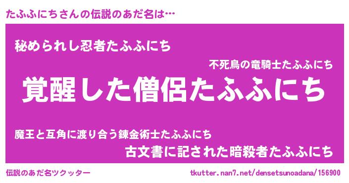 | 男性向けラノベタイトル風あだ名 | 『たふふにちの嫁は女の子じゃないと思った?』 |