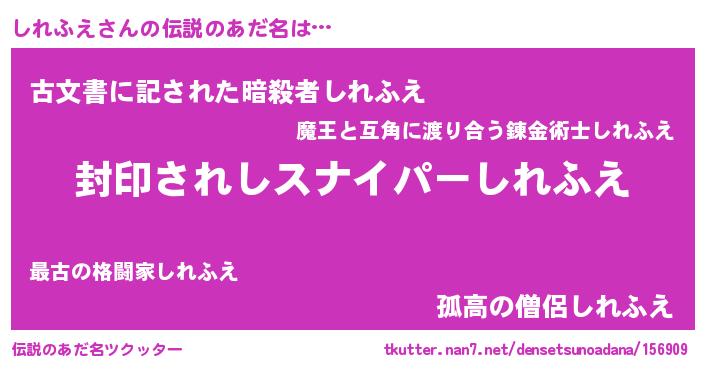 | 意味不明あだ名 | 『ペロリンしれふえ』『永久保存しれふえ』 |