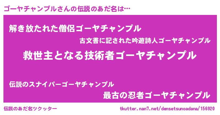 | ヒーロー風カッコイイあだ名 | 『天空の使者ゴーヤチャンプル』 |