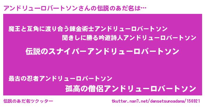 | 胡散臭い通販商品みたいなあだ名 | 『必ず成功する霊験あらたかなお札…その名も「アンドリューロバートソン」』 |