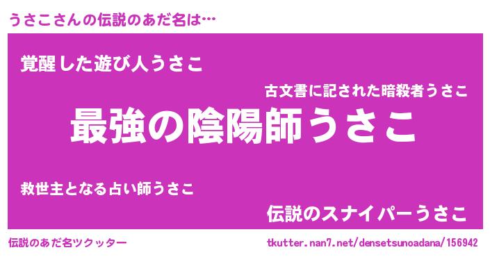 | ファンタジー風あだ名 | 『エターナルウサコー』『ゼウサトゥ』 |