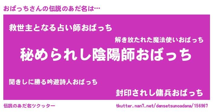 | 意味不明あだ名 | 『住所不定無職おばっち(77歳)』 |