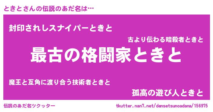 | 女子向けラノベタイトル風あだ名 | 『ときとの玉の輿計画!』 |