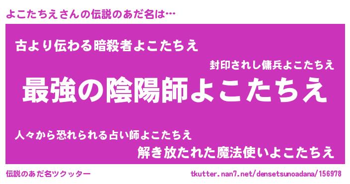 | ヒーロー風カッコイイあだ名 | 『最強戦士ヨコタチエ』『ネオヨコタチエ』 |