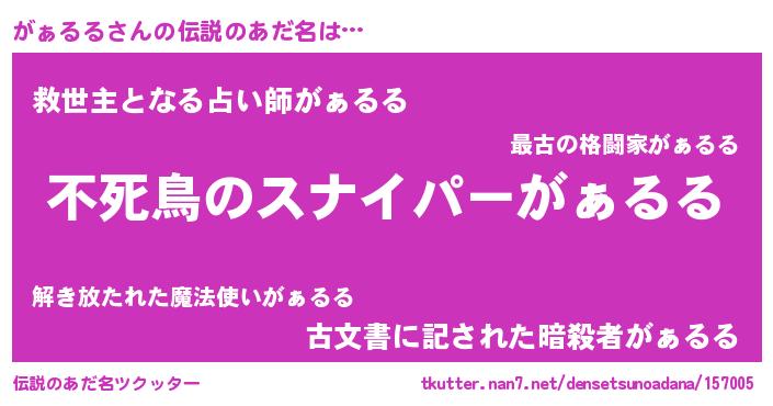 | 意味不明あだ名 | 『住所不定無職がぁるる(93歳)』 |