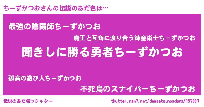| 意味不明あだ名 | 『自称ちーずかつお』 |