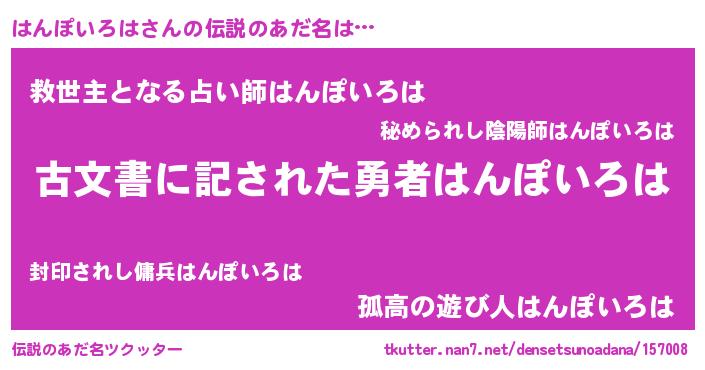 | 意味不明あだ名 | 『住所不定無職はんぽいろは(71歳)』 |